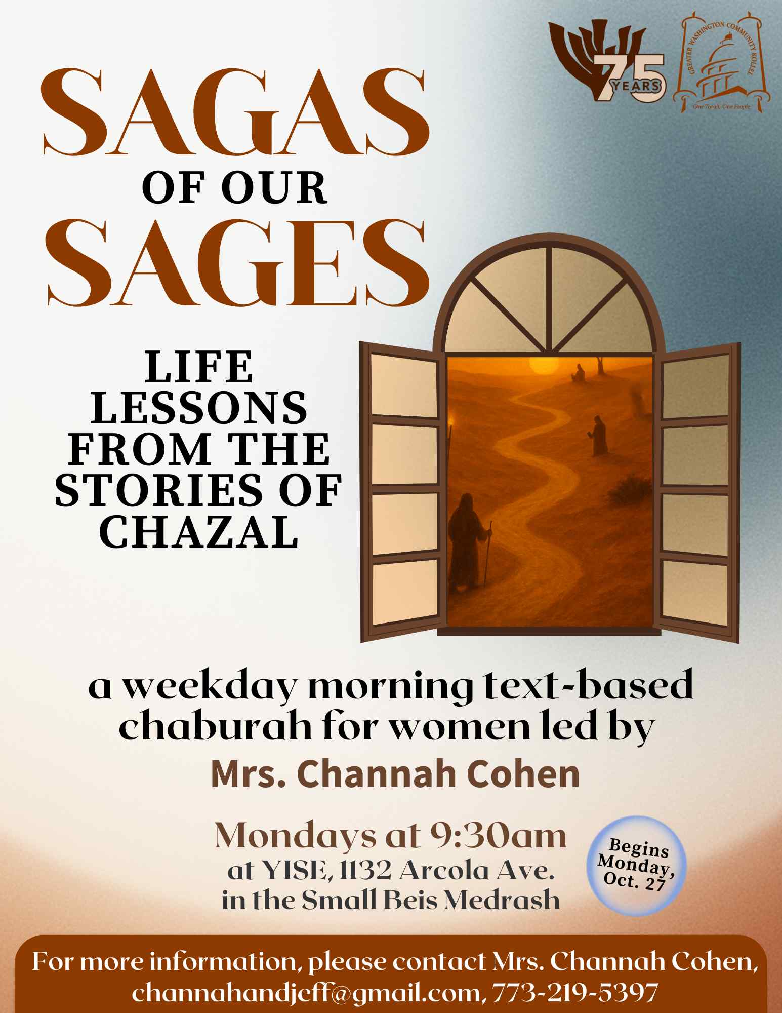 Time: Varying - Email ygrossman@gwckollel.org for time.