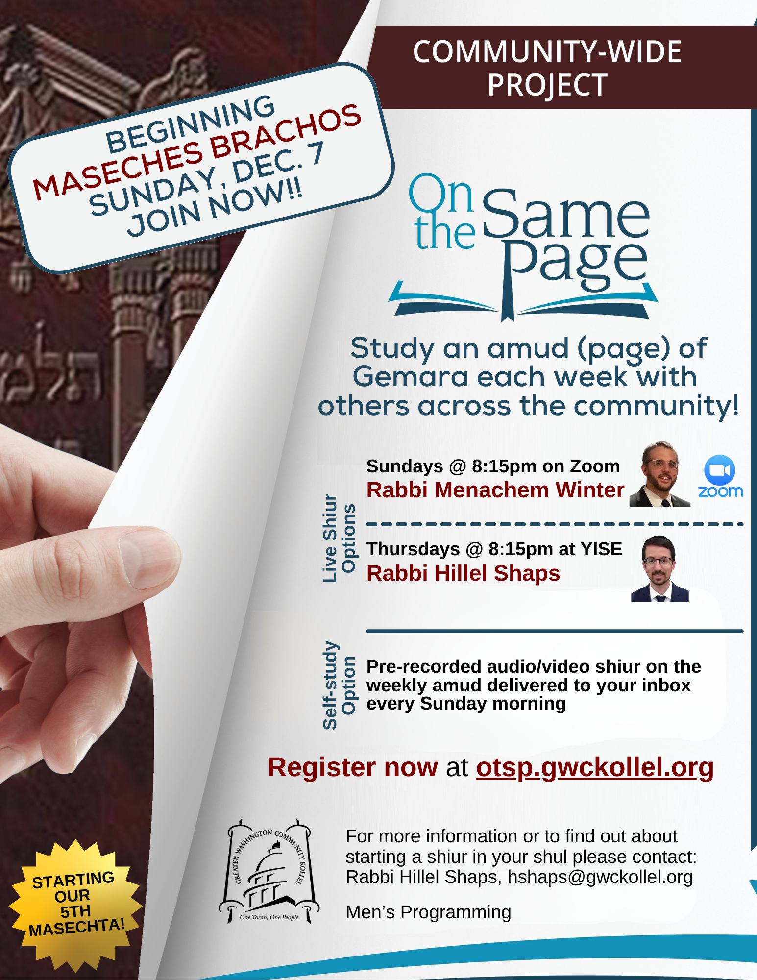 To access previous On the Same Page Shiurim click HERE for video and HERE for audio.