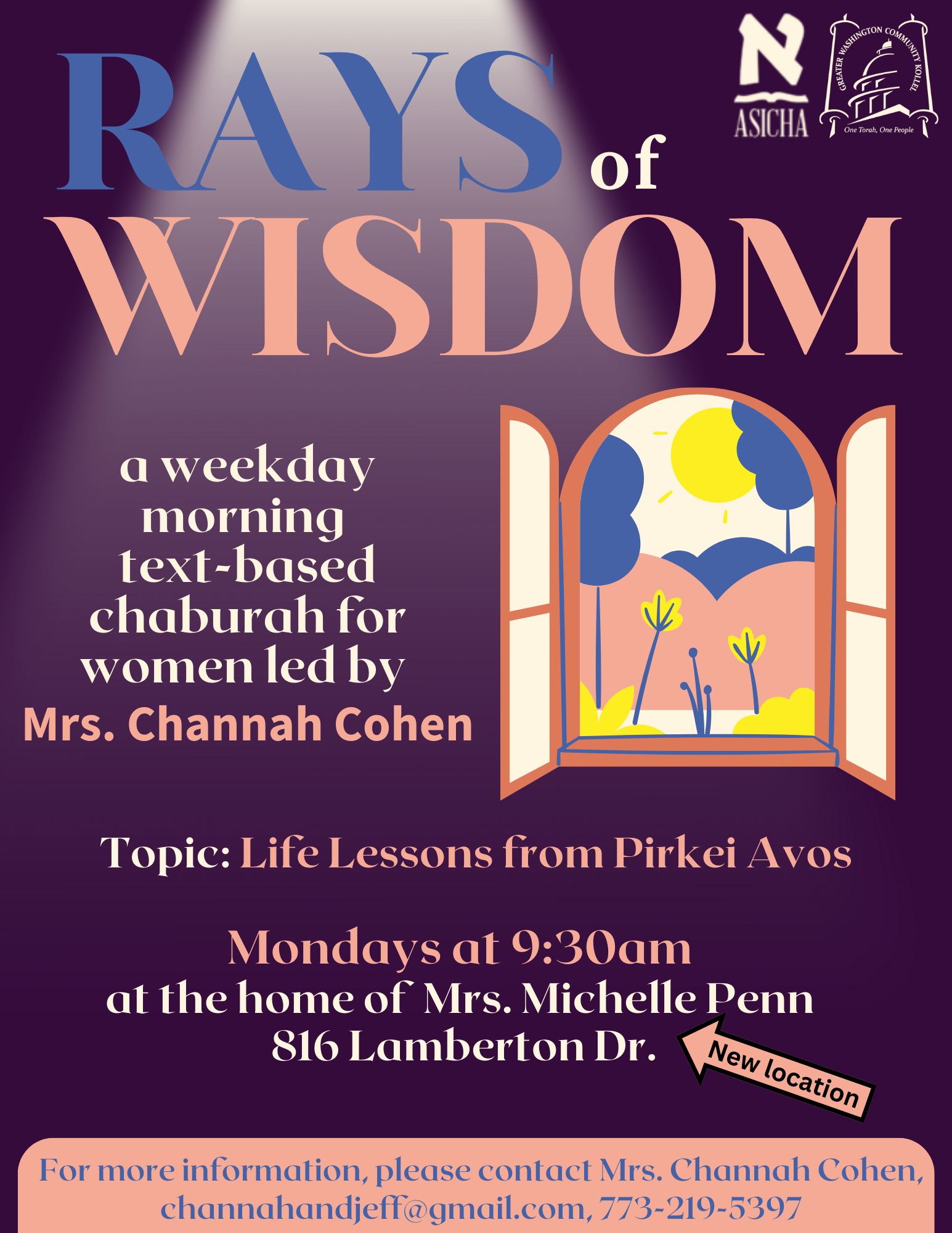 Time: Varying - Email ygrossman@gwckollel.org for time.